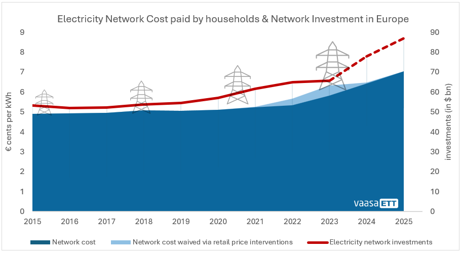 [1] Network cost: Average network cost paid by a typical household in European electricity markets, covers both distribution and transmission charges.