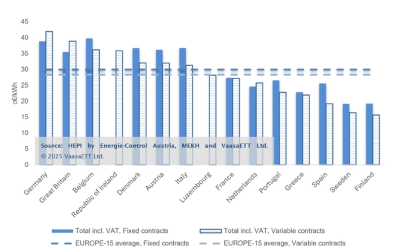 All-in electricity prices for end-user in Europe (April 2025)