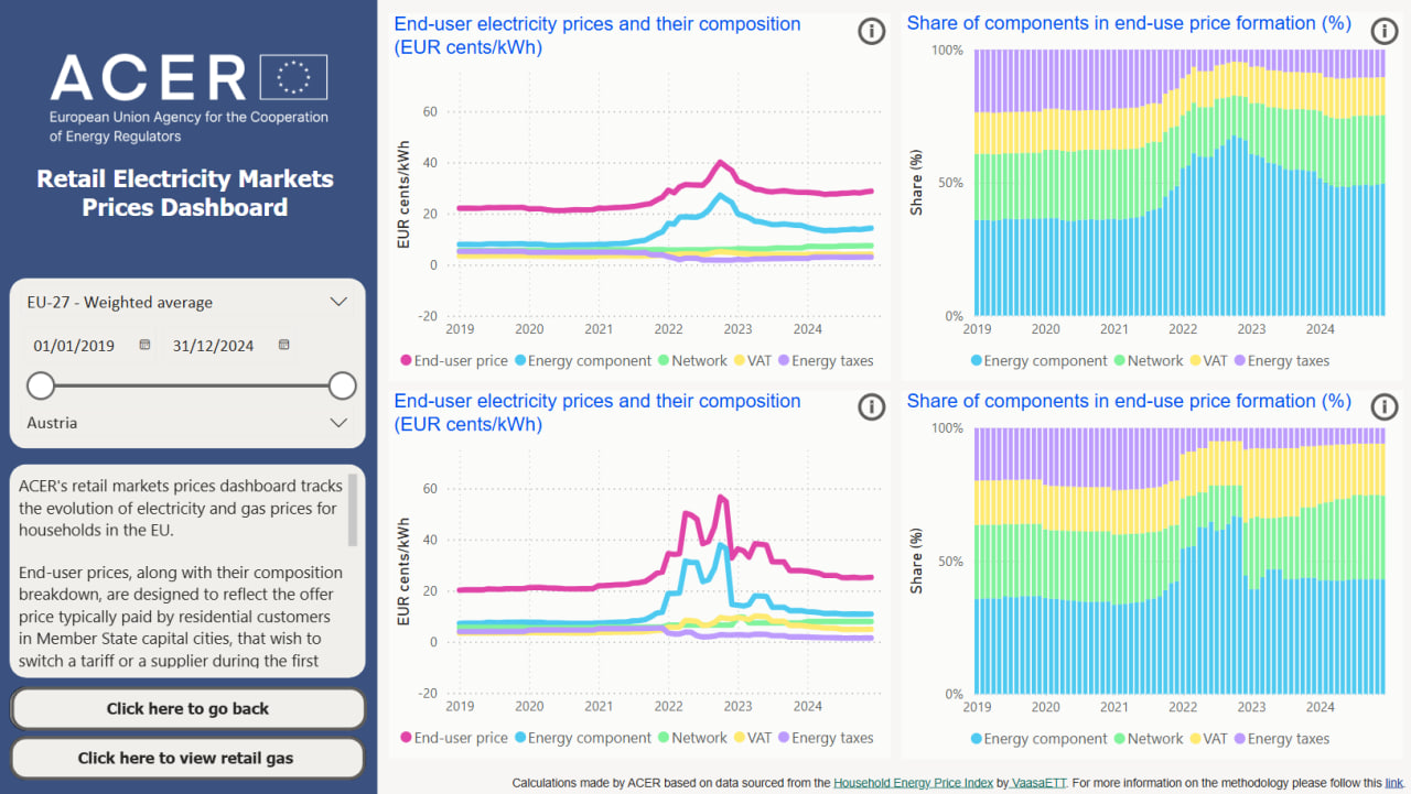 ACER’s data dashboard provides insights into EU household energy price trends